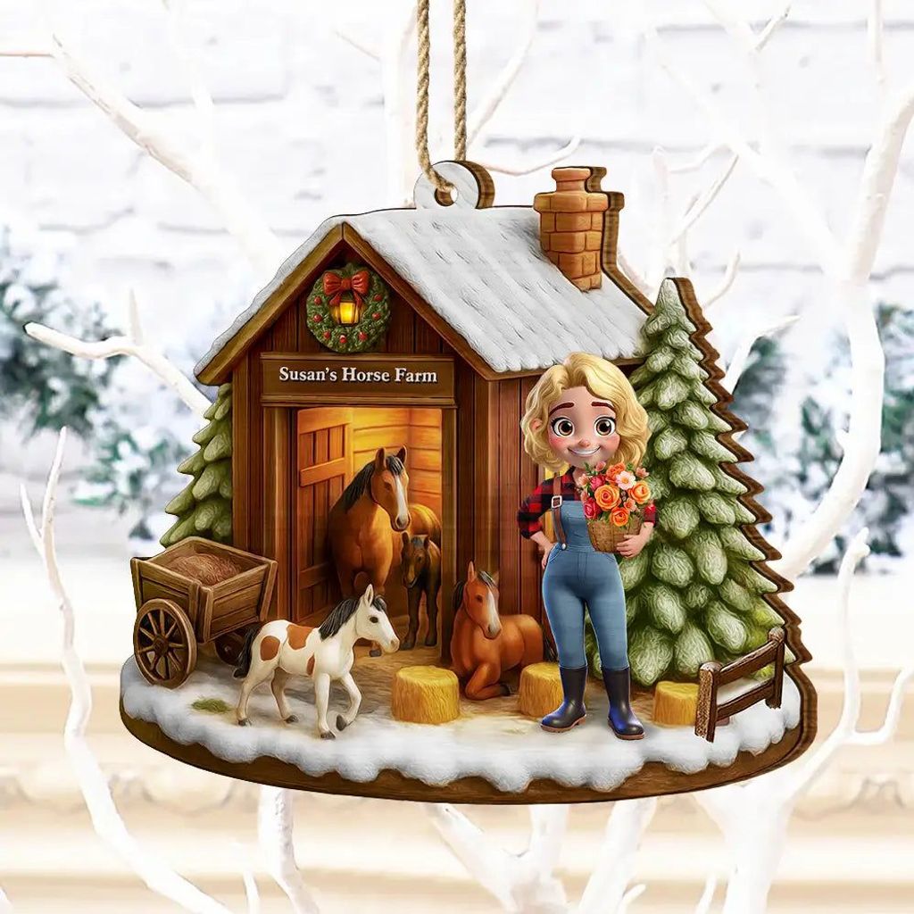 Ferme équestre de Noël avec effet 3D - Décoration personnalisée en bois de forme personnalisée