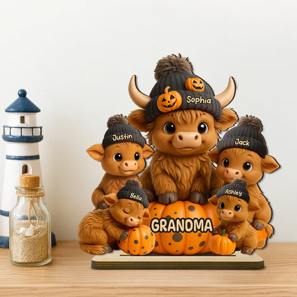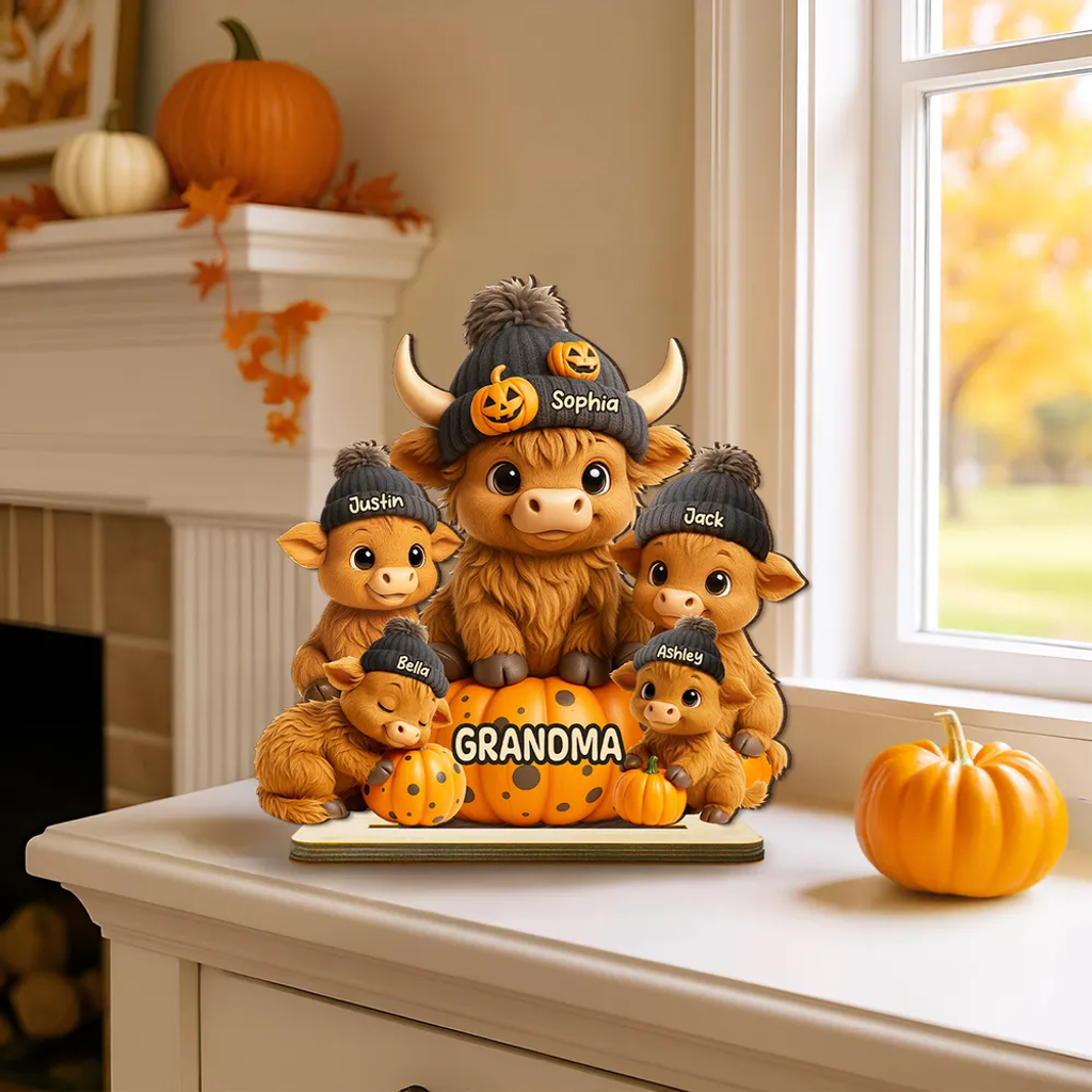 Plaque en bois personnalisée « Mama Cow », décoration d'Halloween chaleureuse et automnale pour maman et grand-mère