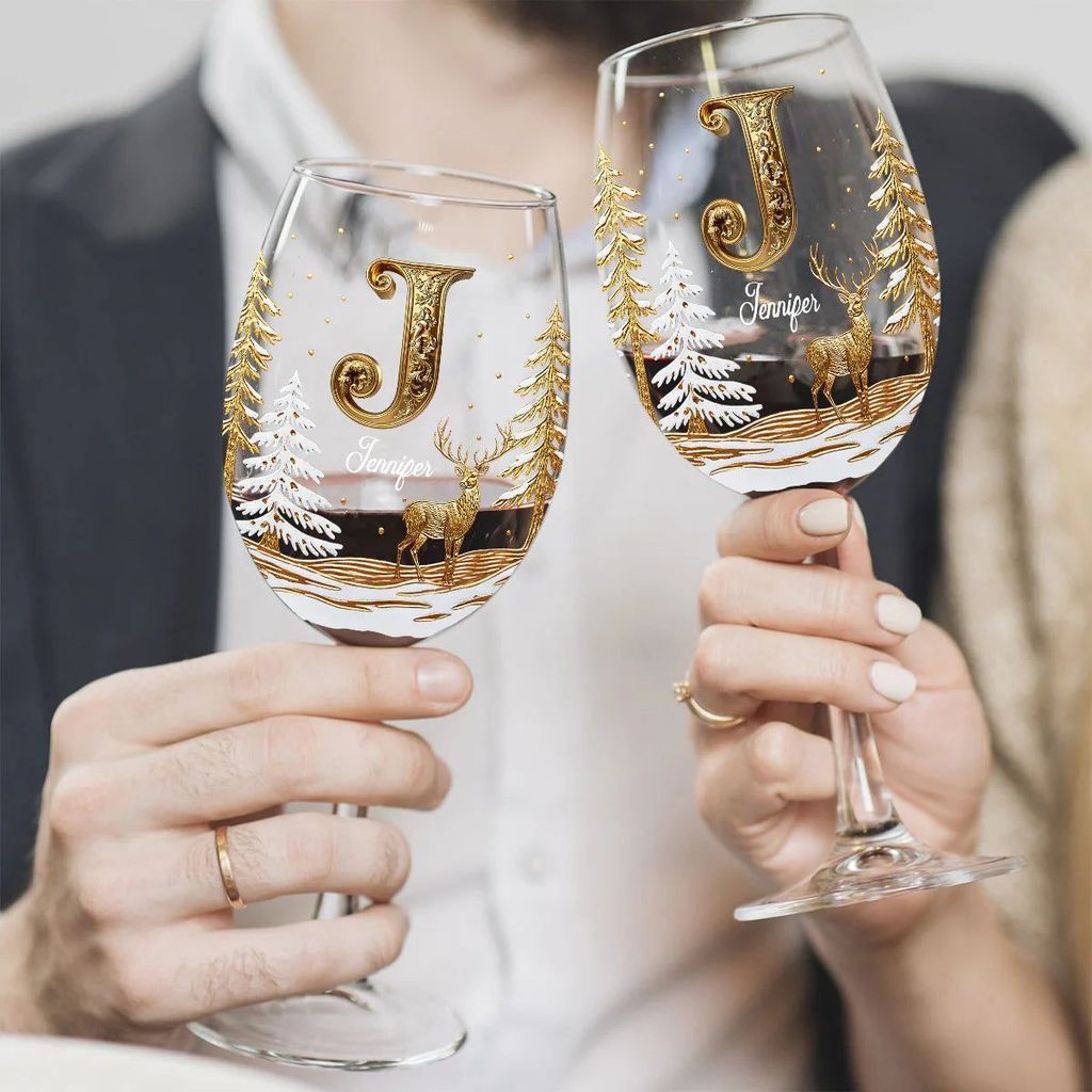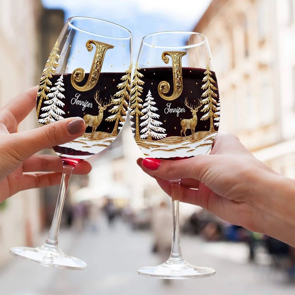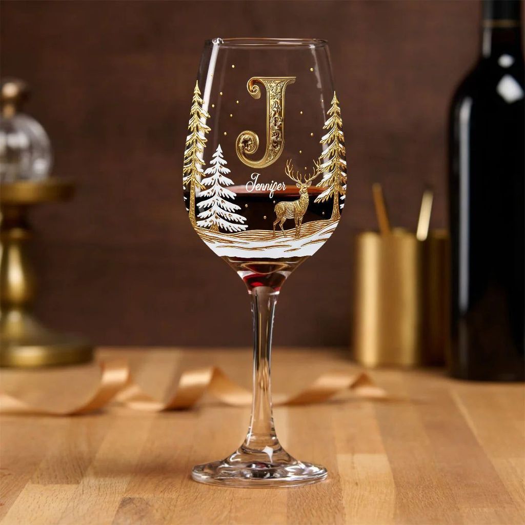 - 1 verre à vin familial personnalisé « Joyeux Noël » à long pied.