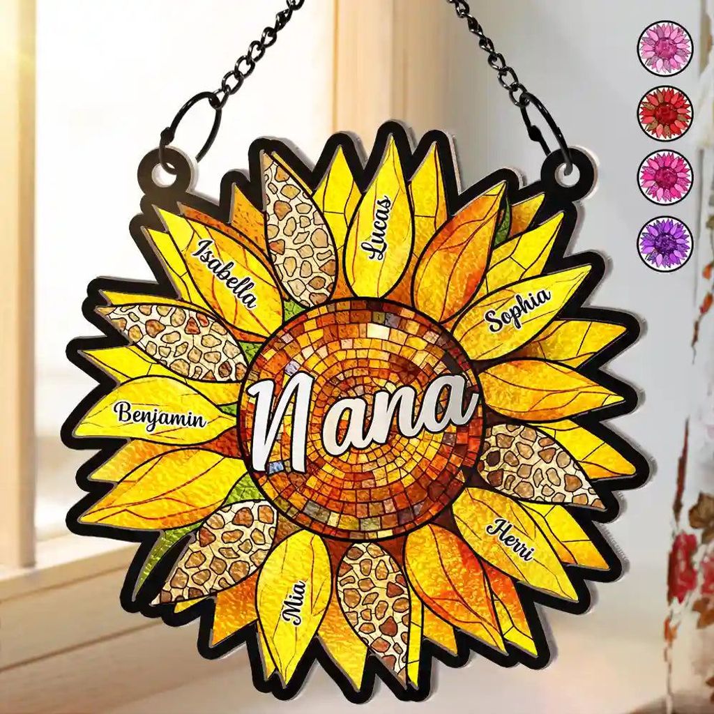Brighten the lives of the special women in your family with the Nana Auntie Mom Family Sunflower Personalized Window Hanging Sun catcher Ornament. This awesome and delightful sun catcher is the perfect gift for mothers, aunts, wife, and grandmas, bringing a touch of joy and beauty to any space.
