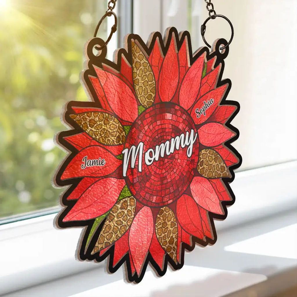 - 1 x Nana Auntie Mom Family Sunflower - Personalized Window Hanging Suncatcher Ornament