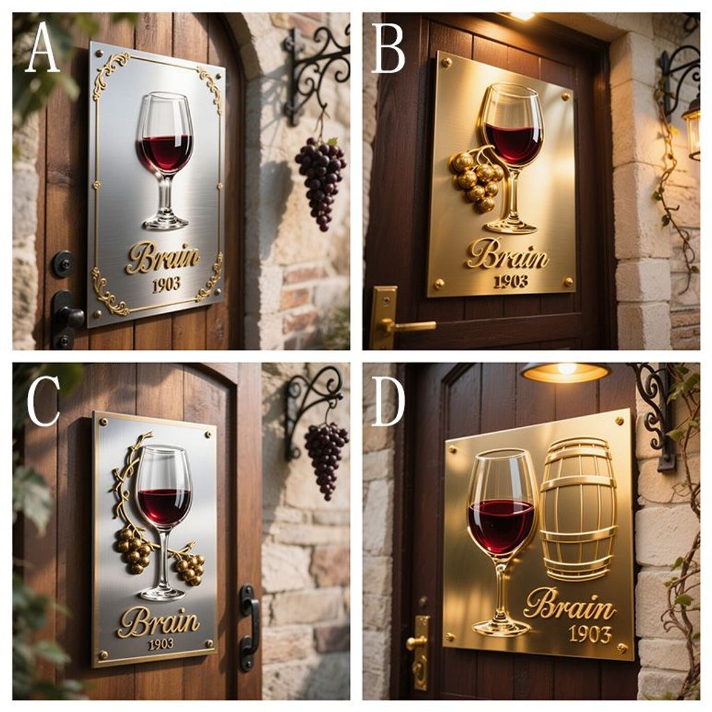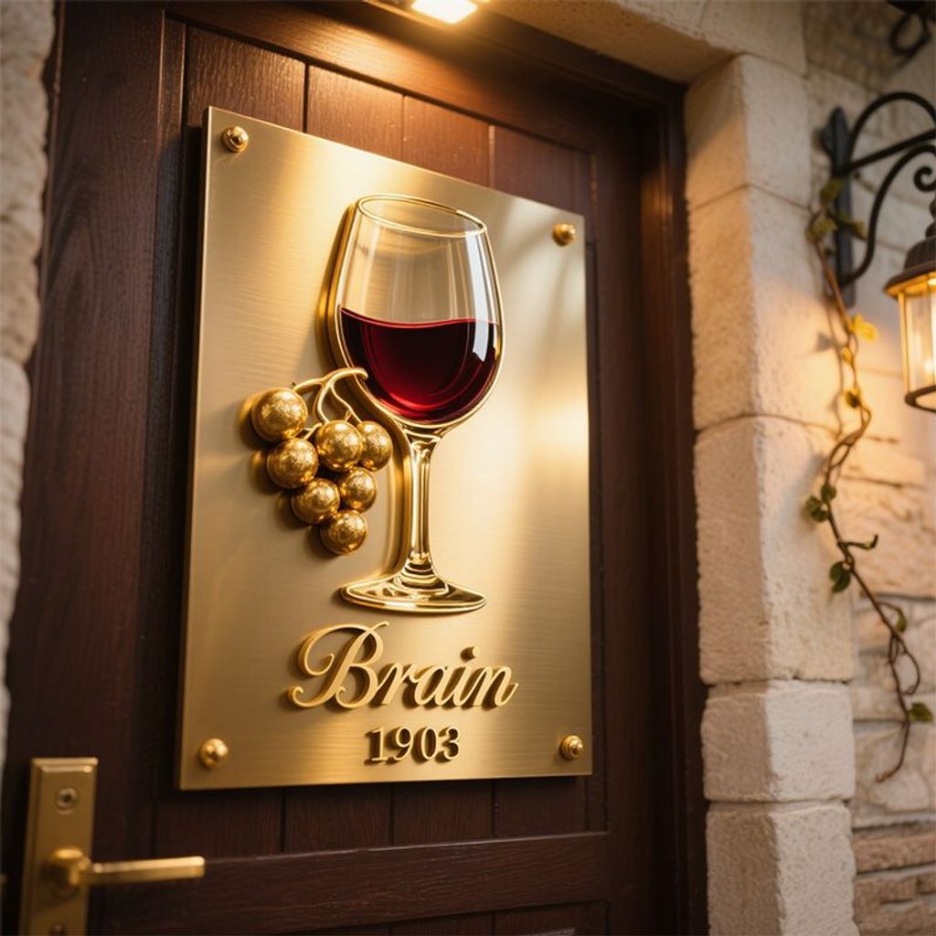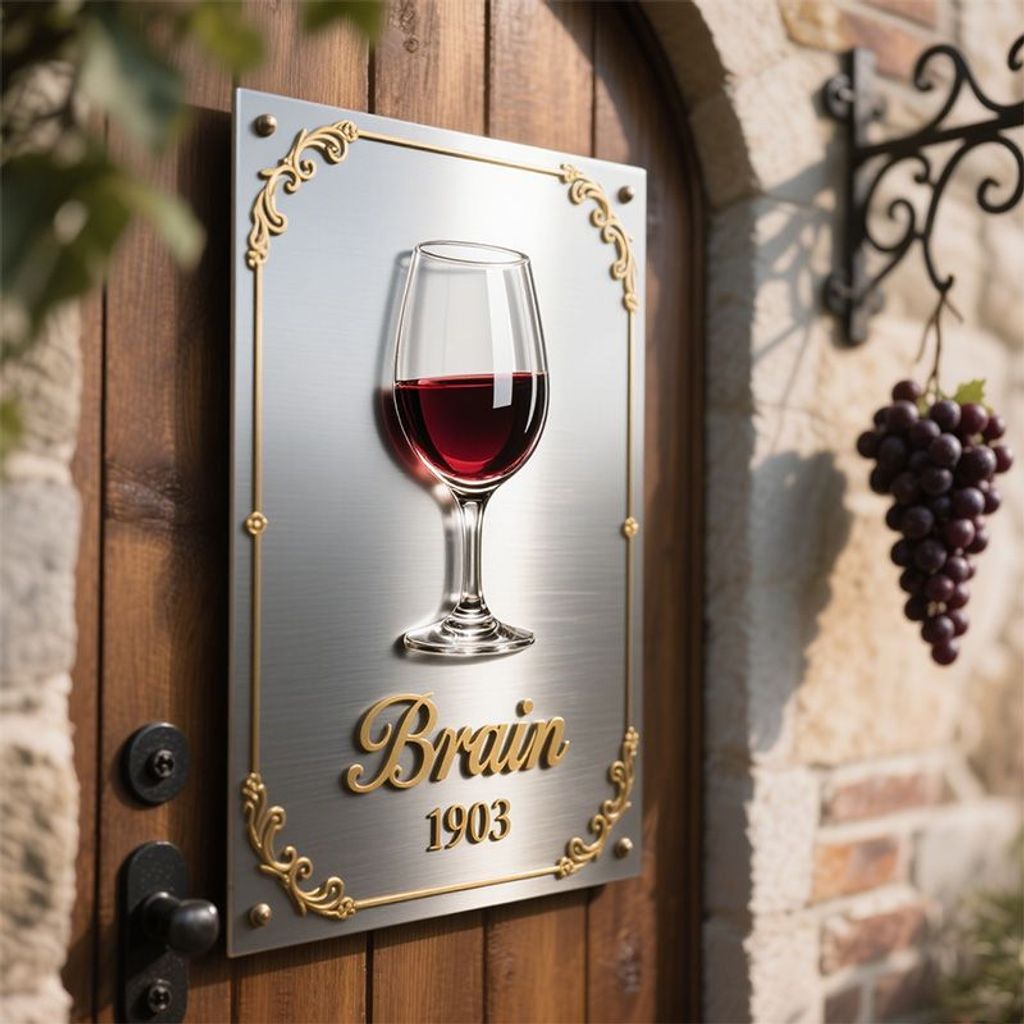 Plus qu'une plaque signalétique, c'est une déclaration de goût raffiné. Fabriqué à partir de métal de première qualité avec une finition brossée sophistiquée, cette plaque de porte mélange astucieusement des motifs de vin classiques comme des grappes de raisin, des gobelets et des vignes en un art durable.