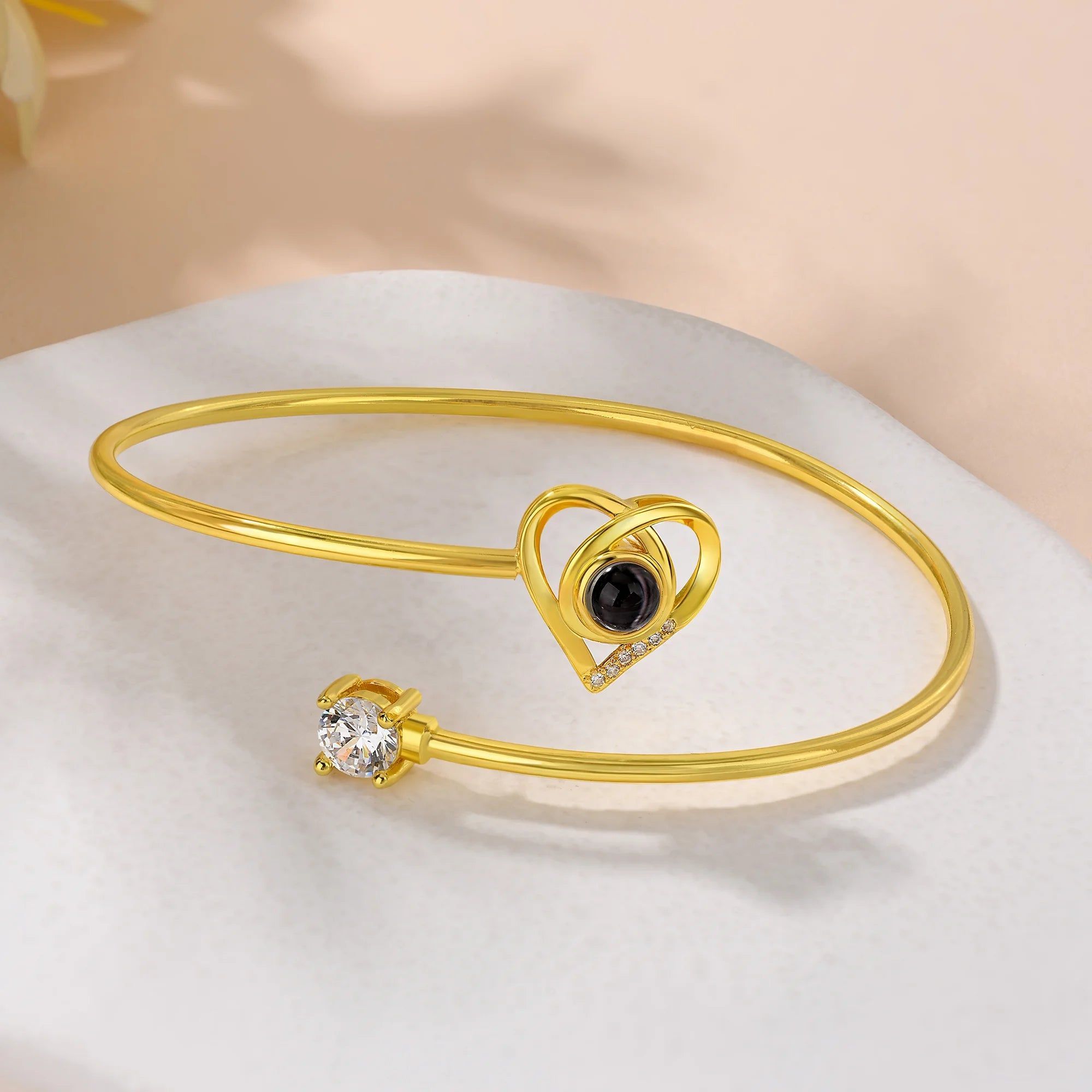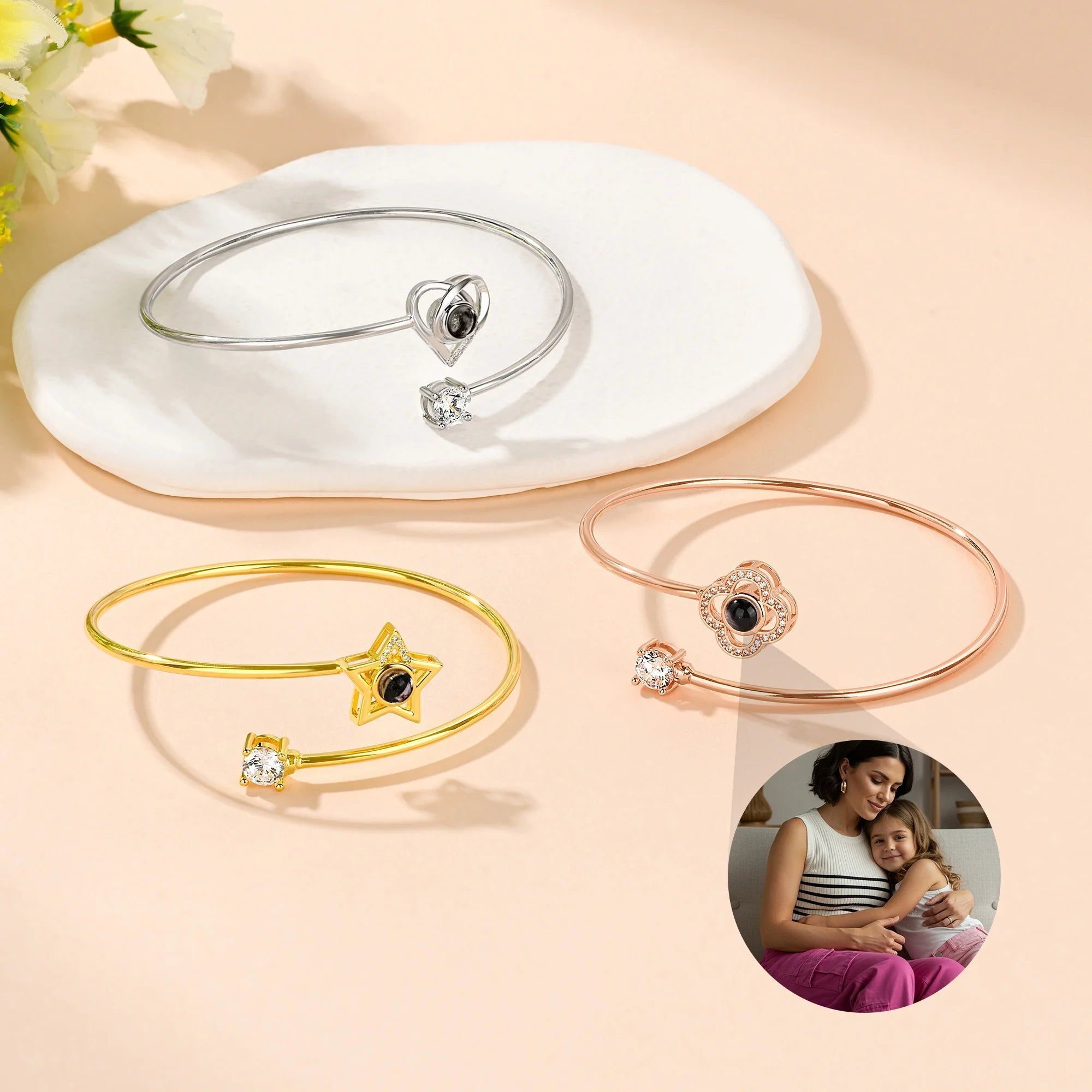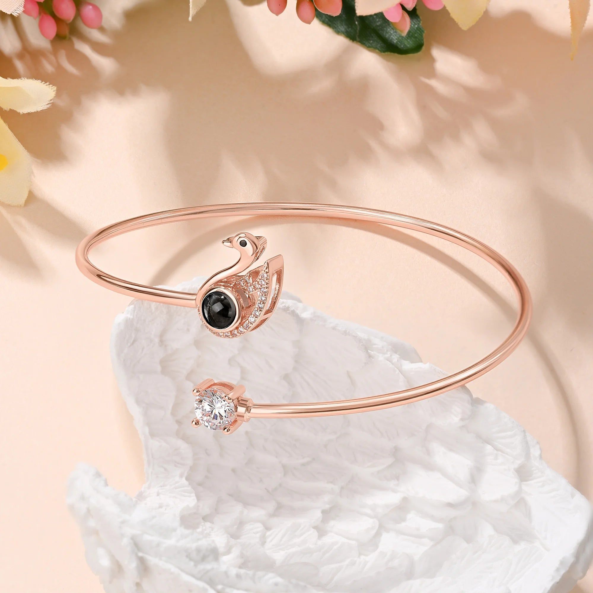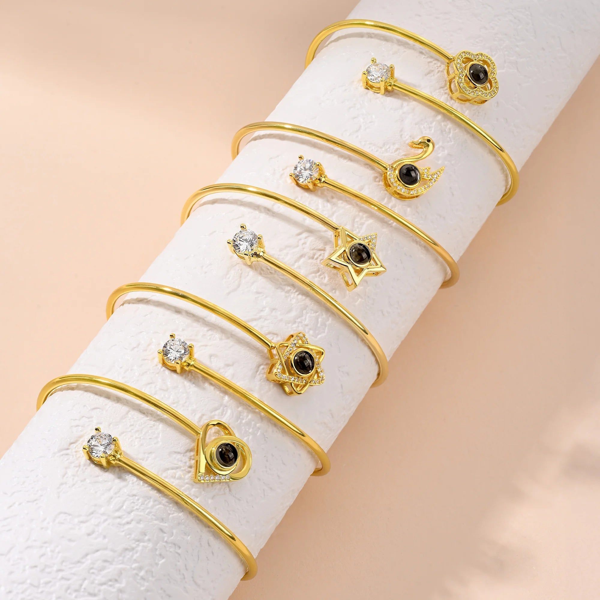Coeur personnalisé étoile cygne Design Photo Micro-Projection réglable manchette bracelet Dainty bijoux anniversaire cadeau d'anniversaire pour les femmes