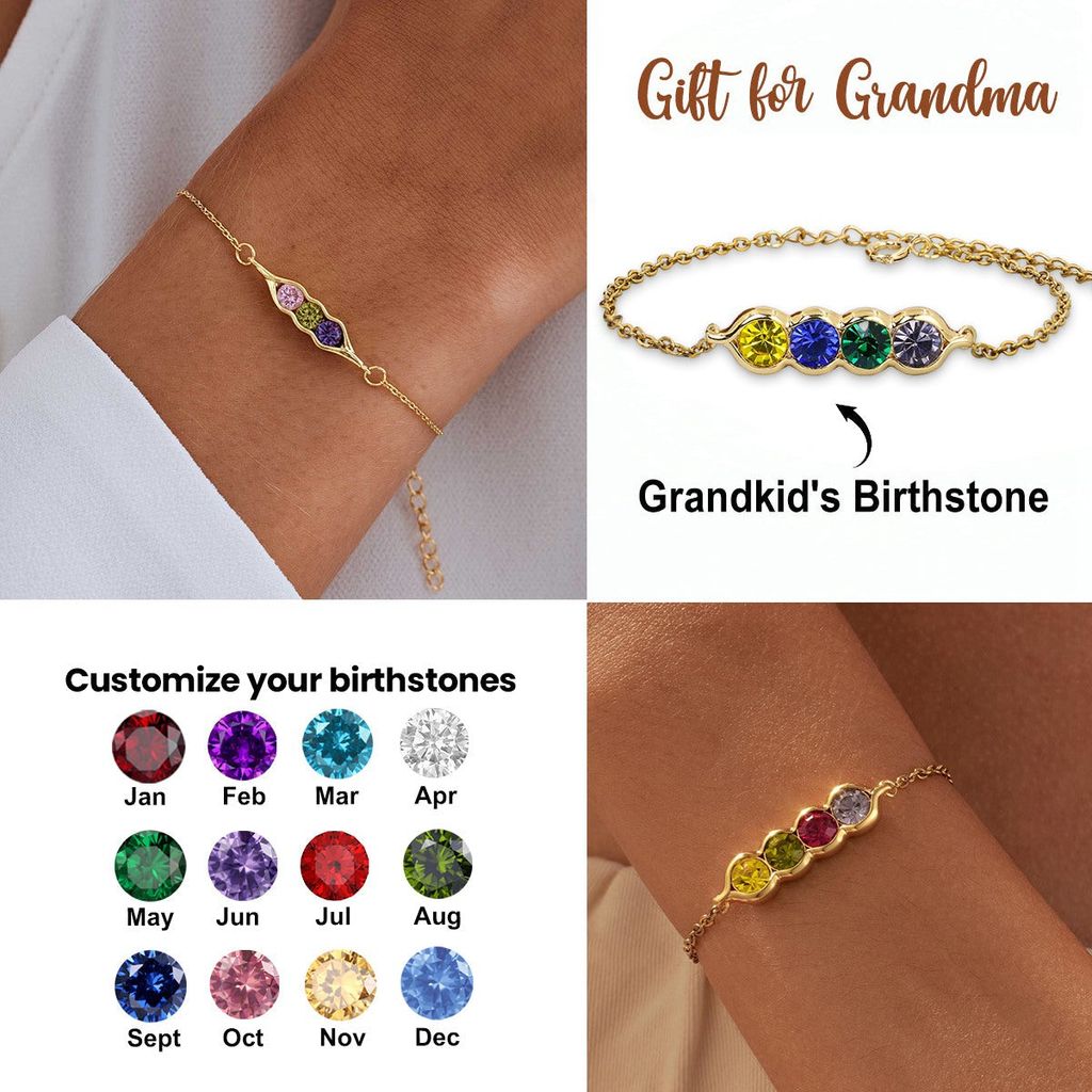 - 1 x bracelet personnalisé avec pierres de naissance Peas in a Pod, cadeau d'anniversaire pour la famille