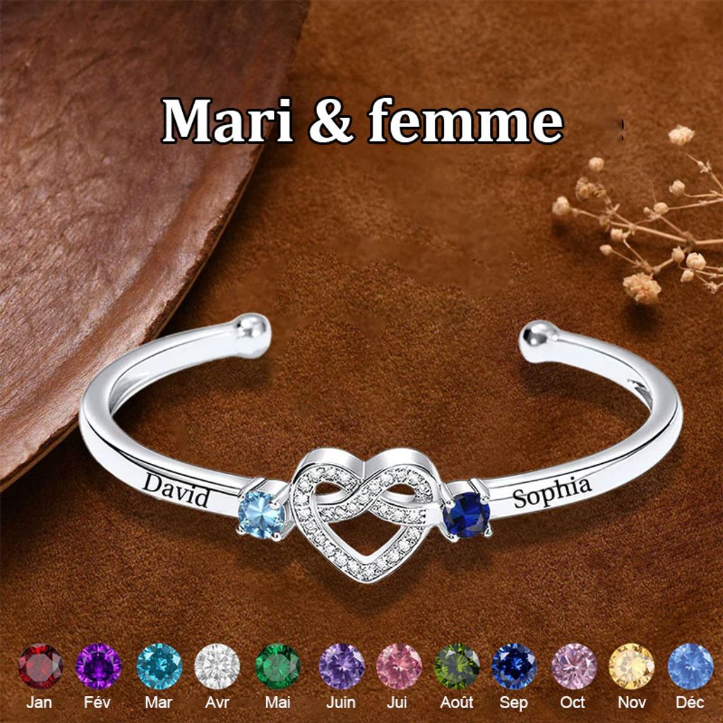 - 1 x Bracelet personnalisé avec pierre de naissance pour couple - Ensemble pour toujours
