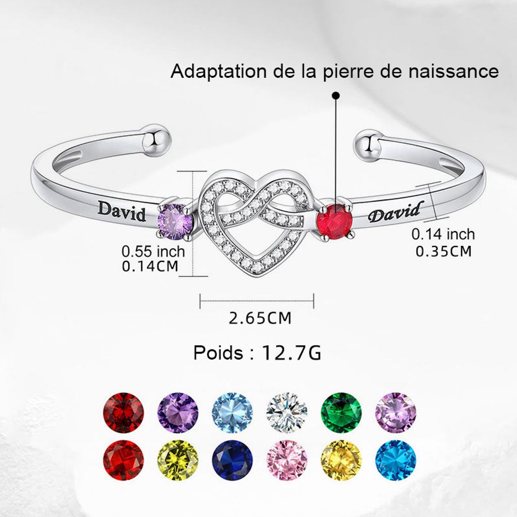 Zone de personnalisation : Possibilité de personnaliser deux noms et mois de pierre de naissance.