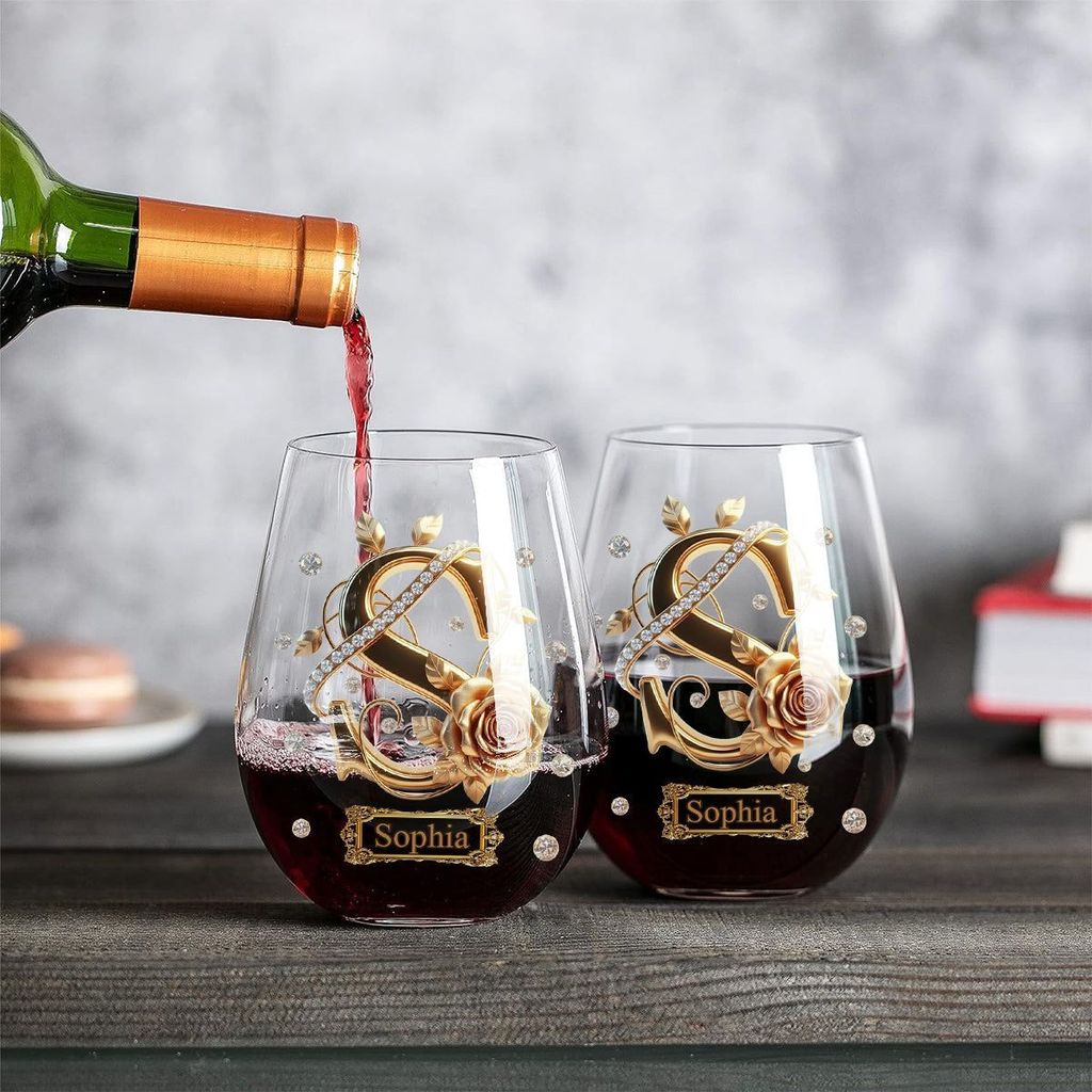 - 1 x Initiales pour les amateurs de vin - Verre à vin personnalisé avec motif « Wine All Over »